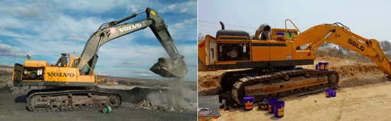 外观对比:沃尔沃EC360BLC挖掘机(左)VS山东j9九游会E6360F挖掘机(右)