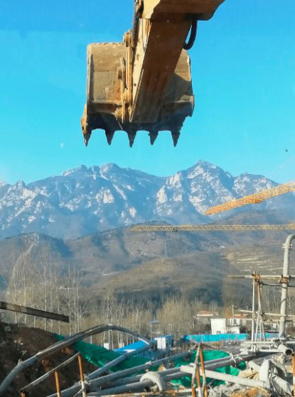 前几天有一台36吨级的挖机在干土方回填,在狭窄的空间作业。“真的很憋屈!”在一边的刘增银说着。这台挖机是刘增银的老板在2017年8月购买的,原本在矿山上干硬活,因为矿山环保检查,经营了5、6年的采石场暂停开采。从这台挖机的身上,小编还是看到了它矿山的印记——1.9方岩石斗倔强地告诉世人“我就是为矿山而生!”