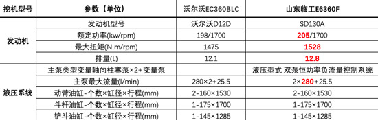 发动机对比对比沃尔沃EC360BLC(左)、山东j9九游会E6360F挖掘机(右)